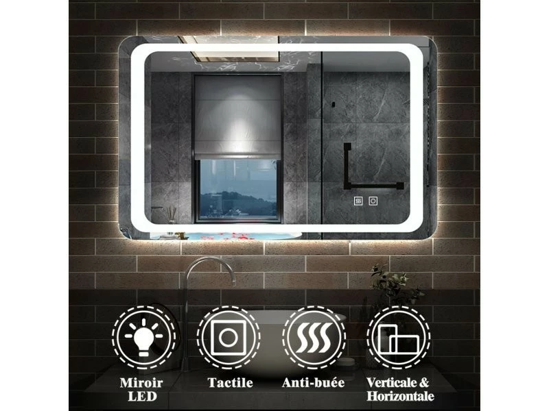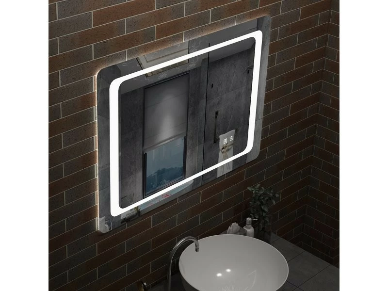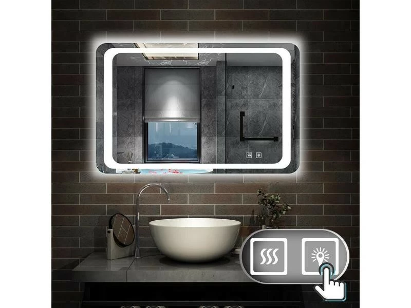 Miroir Lumineux Led 80x60cm Miroir De Salle De Bain Anti-buée