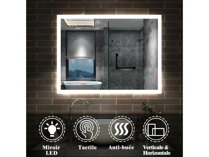 Aica Miroir Lumineux Led Avec Anti-buée Commande Par Effleurement Horizontal/vertical 100x60cm