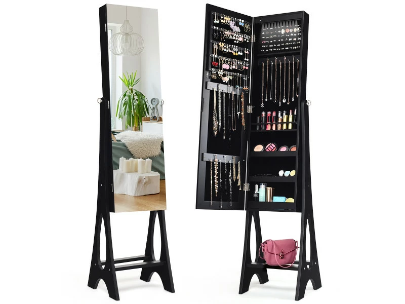 - 【Porte-miroir lisse avec une bonne adhérence :】le miroir pleine longueur de cette armoire à bijoux est assez unique, ce qui lui donne un aspect plutôt soigné. Fait en verre, il vous offre une vue complète de la tête aux pieds. La porte avec système ventouse la maintiendra fermée pour éviter que les bijoux ne tombent.