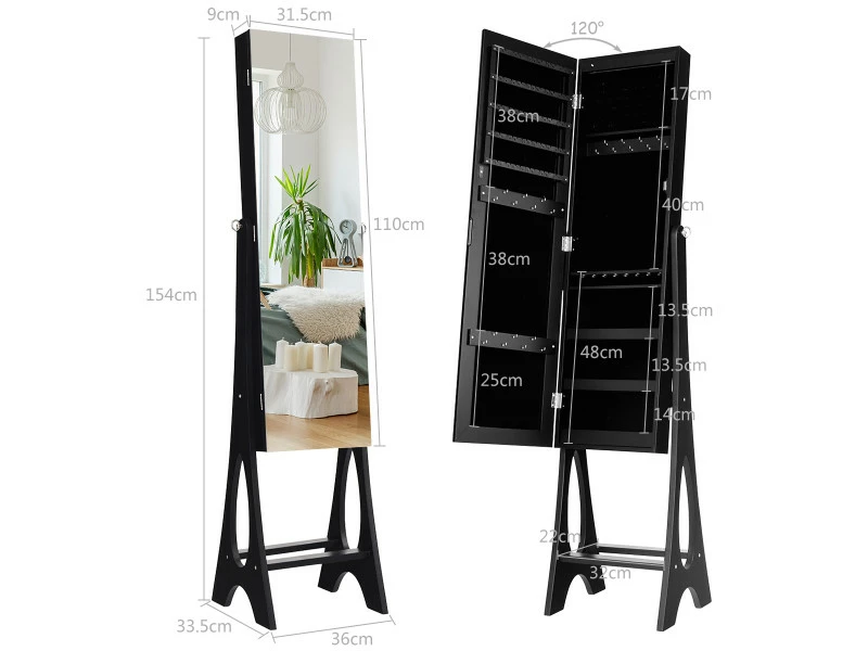 - 【Matériaux de première qualité et aspect soigné:】fabriquée en MDF de qualité supérieure, cette armoire à bijoux est solide et résistante. Elle est pratique et présente un aspect soigné qui s’accorde avec tout type de décor. Elle trouvera sa place dans votre intérieur.