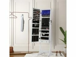 SONGMICS Armoire à Bijoux, LED, Grand Tiroir, Miroir Psyché, Roulettes, Serrure JBC61W