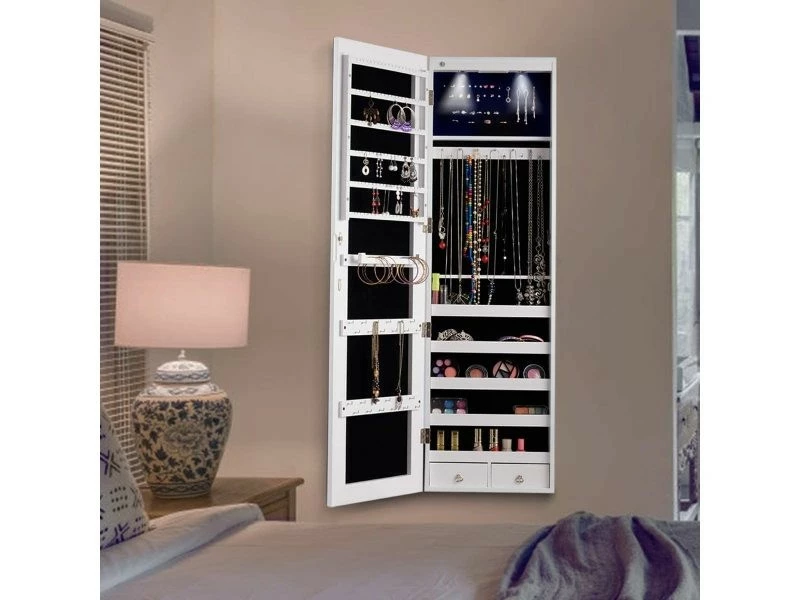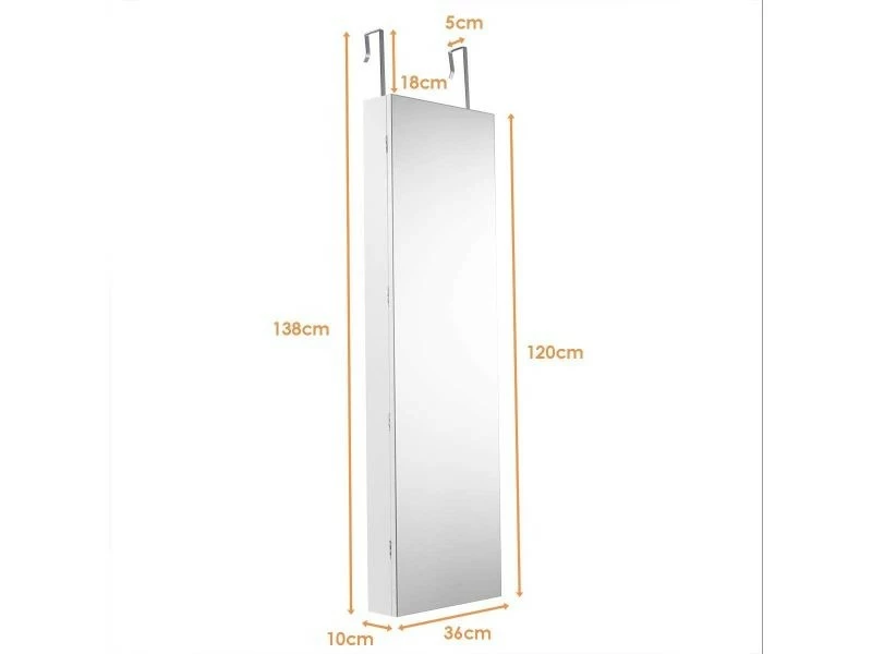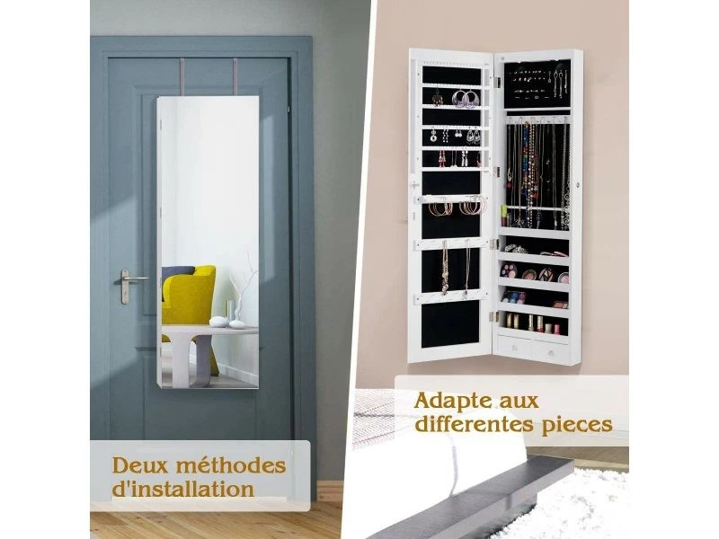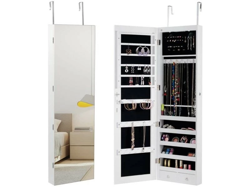 - Économiser de l’espace: Vous pouvez suspendre cette armoire à bijoux au cadre d’une porte à l’aide des supports inclus ou tout simplement la fixer à un mur à l’aide des vis fournies. Sa structure est simple et compacte, que vous l’accrochiez à la porte ou au mur, elle sera un réel gain de place !
