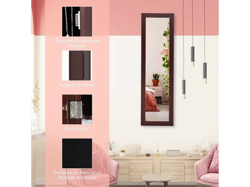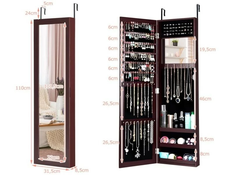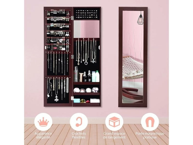 - Armoire Ă bijoux multifonctionnelle: Notre armoire Ă bijoux est composĂ©e d’un miroir et d’une armoire, ainsi, elle vous offre beaucoup d’espace pour ranger vos bijoux tout en vous permettant de profiter du plaisir de vous habiller. Vous pouvez utiliser le miroir pour votre tenue ou porter des boucles d’oreilles et des colliers.