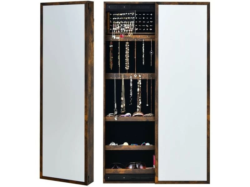 - 【Grand miroir et porte coulissante :】Le grand miroir de 120 x 37 cm vous offre une vue de la tête aux pieds, ce qui le rend idéal pour s’habiller et se maquiller. Les bijoux derrière la porte coulissante silencieuse sont facilement accessibles.