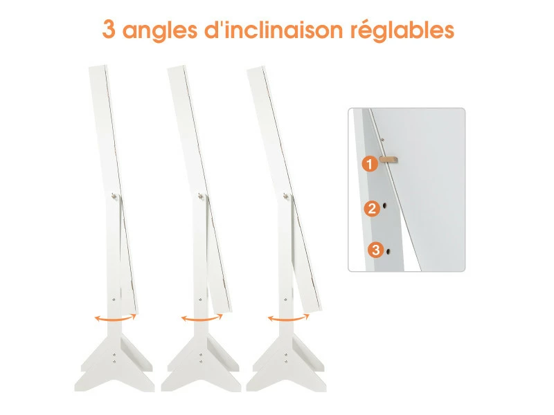 Quatre angles d’inclinaison et un miroir pleine longueur pour une vue d’ensemble