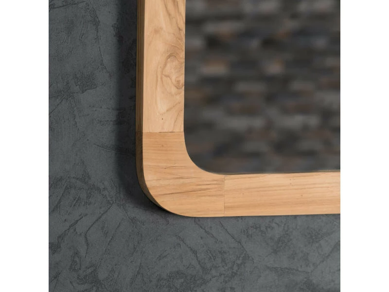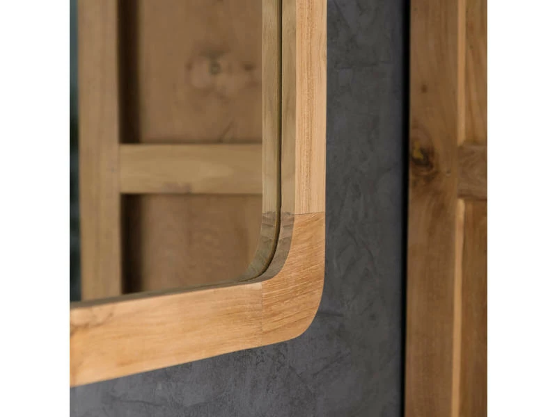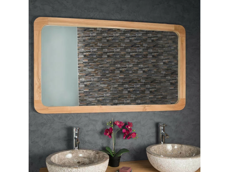Pour une touche naturelle dans votre salle de bain intégrez le miroir Rétro 120 pour un retour en arrière. La forme arrondie de son cadre en bois massif teck brut et la simplicité de ses lignes vous charmeront. Cet accessoire déco s’associera parfaitement avec d’autres produits en bois teck comme nos meubles sous vasque de salle de bain et nos colonnes de rangement. Ce miroir teck accompagnera plus particulièrement le meuble de salle de bain Rétro 120 cm de la même collection. Dimensions miroir Longueur : 120 cm Epaisseur : 3 cm Hauteur : 70 cm Miroir teck