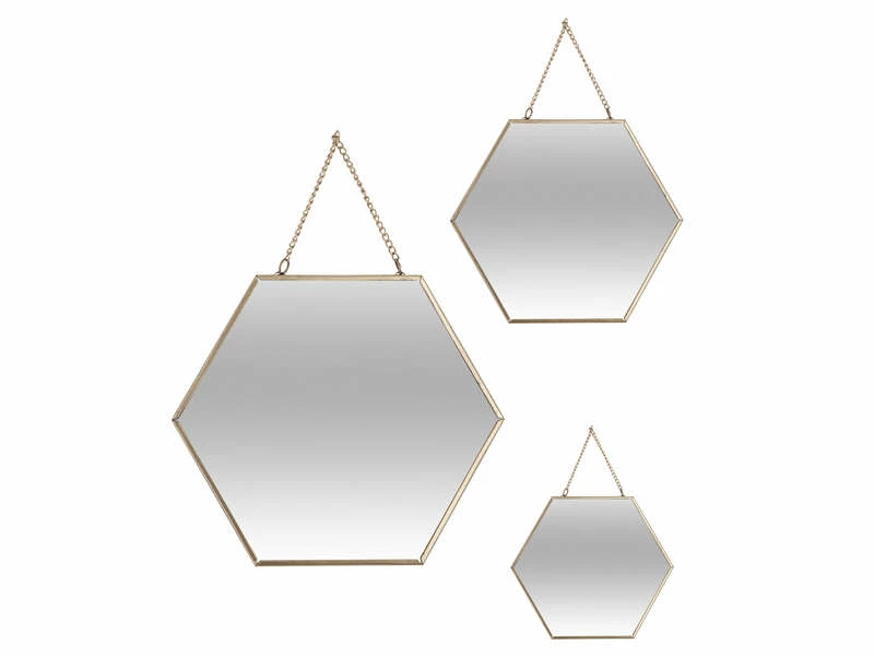 | Description | Lot de 3 miroirs hexagonaux à suspendre |