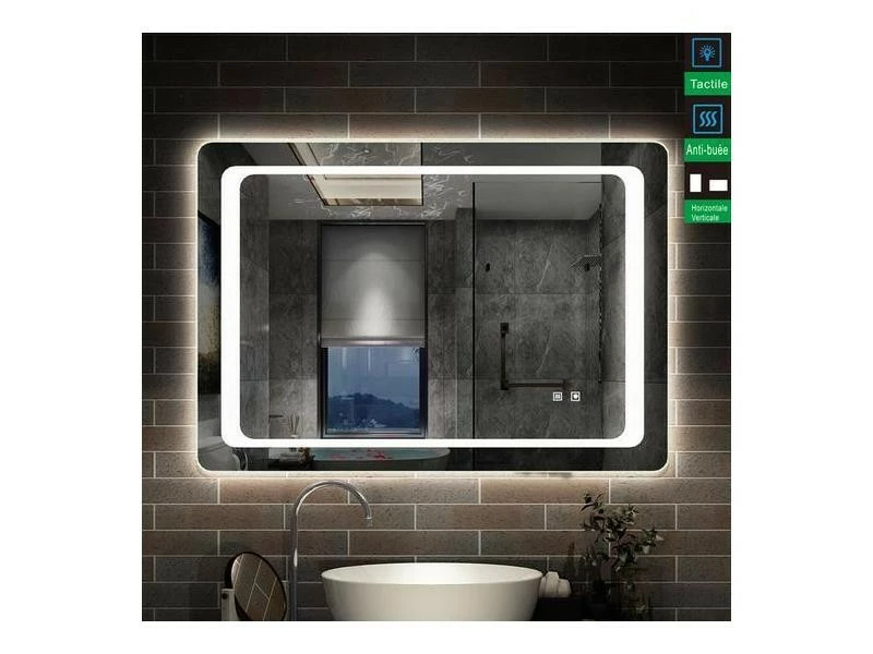 Miroir Lumineux Led 80x60cm Miroir De Salle De Bain Anti-buée