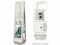 Giantex Armoire à Bijoux Avec Miroir Murale Cabinet De Bijoux Stockage Blanc