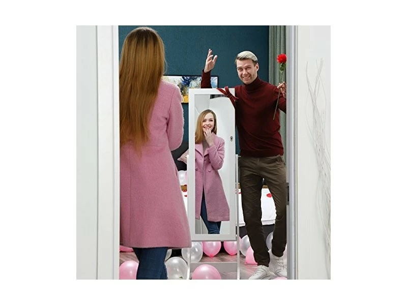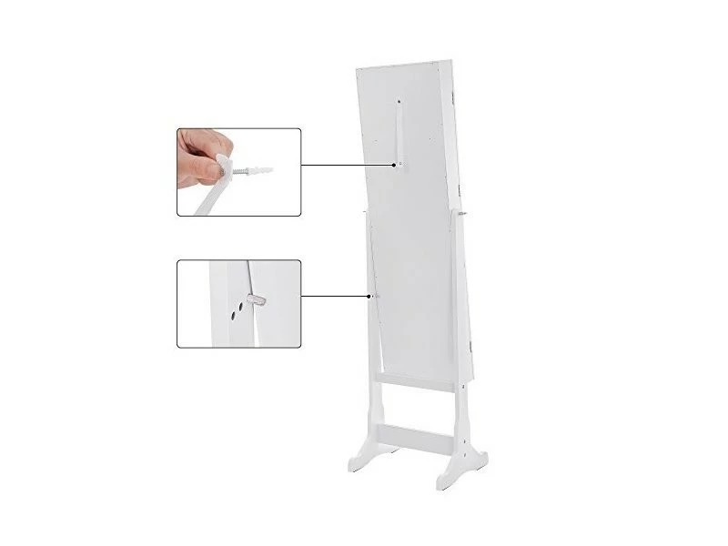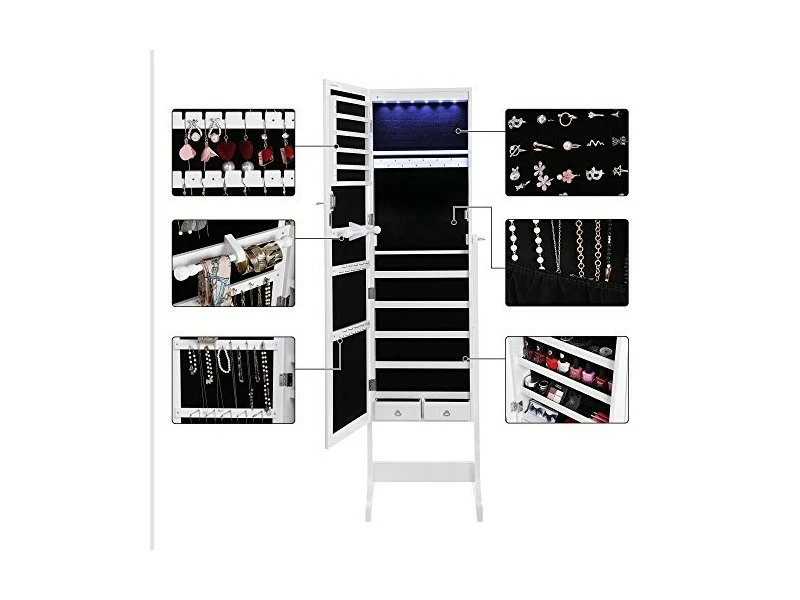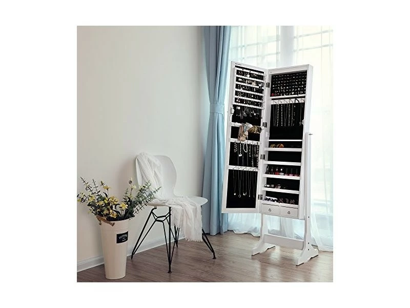 Cette armoire à bijoux avec miroir est un produit idéal et sécurisant pour ranger tous vos bijoux et accessoires de beauté. Très élégante avec sa couleur, l’armoire sera parfaite dans votre chambre, dressing, boudoirs, garde-robes ou couloirs. Elle se dispose des crochets et des petites étagères pour placer toute votre collection de bijoux, de lunettes, de foulards, etc.. Plus d’ennuis pour le rangement de vos accessoires de beauté.